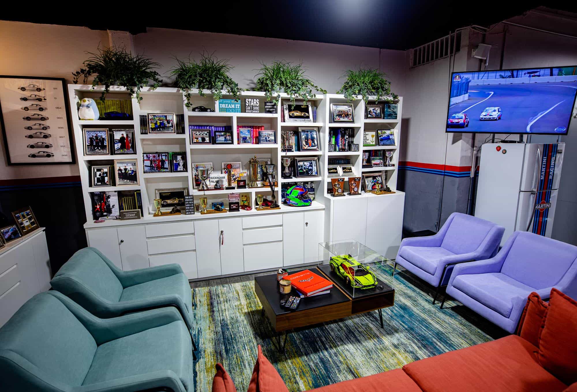 El garage -ubicado a pasos de Polanco- cuenta con todo lo necesario para mantener los autos del equipo en condiciones competitivas y además un espacio más que agradable donde recibir amigos, sponsors y generar nuevos negocios relacionados al automovilismo, nuestra pasión.